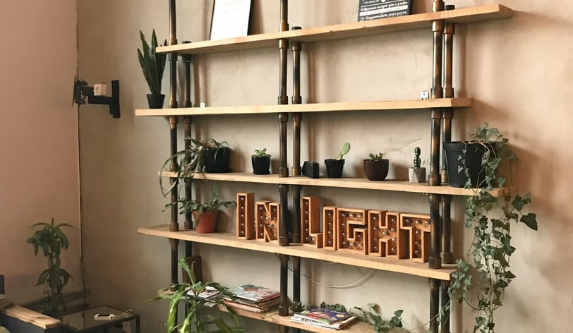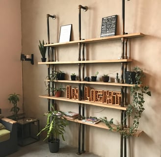 Metallregale im Industriestil: Offene Regale aus Metall verleihen dem Raum einen industriellen Charme und bieten gleichzeitig viel Stauraum für Bücher, Dekorationsobjekte oder Küchenutensilien.