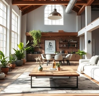 Die Planung für Wohnbereiche in einer Loft-Wohnung erfordert viel Aufmerksamkeit. Teppiche, Pflanzen und Kunstwerke definieren die Bereiche. So entsteht eine einladende Atmosphäre. Die Kombination verschiedener Materialien und Texturen macht die Loft-Wohnung sowohl funktionell als auch ästhetisch ansprechend.